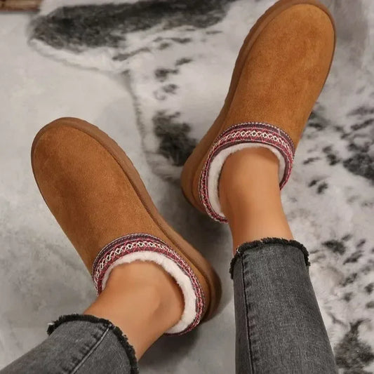 2026 New Women's Snow Boots Casual Slip-on Wool Warm Home Luxury Elegant Winter Cashmere Warm Boots Fashion Flat Shoes Plus Size