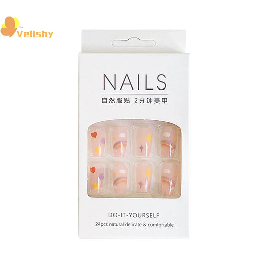 2025 Newest 24PCS/Set Nail Art French Fake Nails Set With Glue ABS Plastic - Simple Short Nail Stickers
